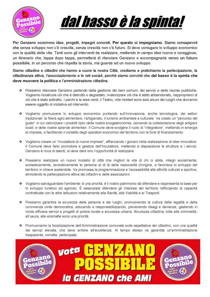 Lista Civica "Genzano Possibile" per Carlo Zoccolotti Sindaco di Genzano.